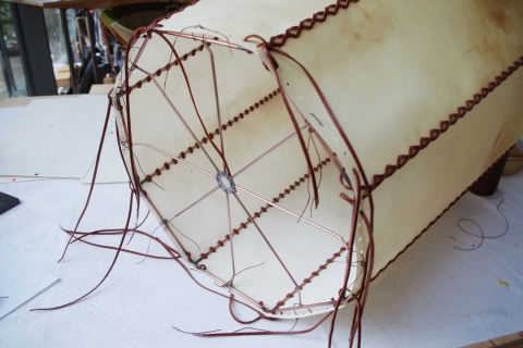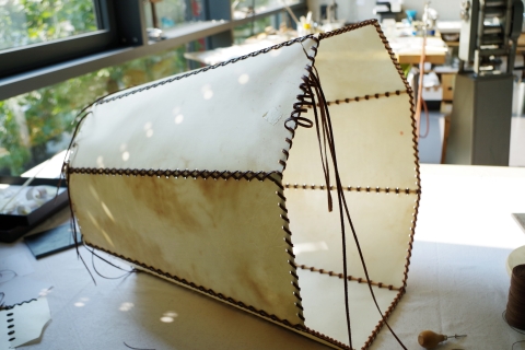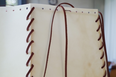 Bespannen eines Lampenschirms mit ‚antikem‘ Kalbspergament