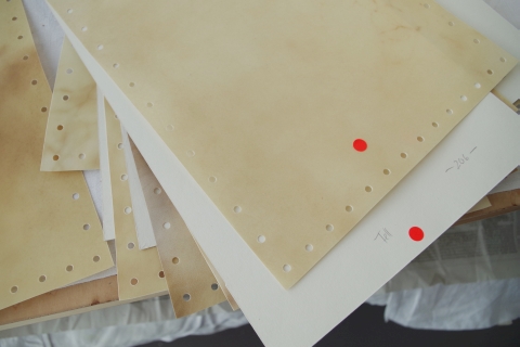 Vor dem Zuschnitt werden die Bereiche im Pergament sorgfältig ausgewählt